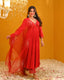 Step into festive flair with the Jhanvi Cotton Suit Set! In beautiful coral hues, this Anarkali-style flared kurta boasts a round neckline with intricate aari work and stylish three-quarter sleeves. Paired with matching pants and an embellished kota doriya dupatta, it’s a vibrant blend of elegance and tradition. Perfect for...