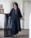Embrace classic elegance with the Reeva Suit Set in rich navy blue cotton silk. This flared suit features a flattering V-neckline, three-quarter sleeves with intricate patchwork, and charming buttons on the yoke. Paired with matching pants and a contrasting beige dupatta, it’s the perfect blend of sophistication and style for...